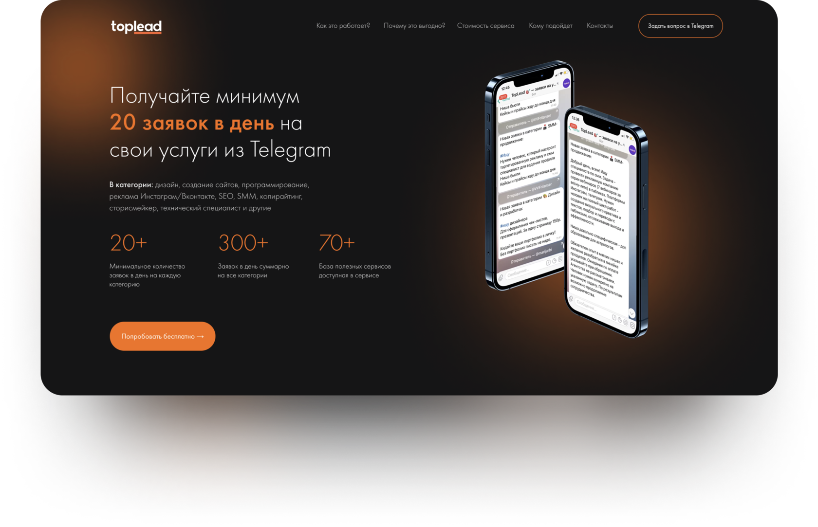 Сервис TopLead — поиск клиентов на услуги для фрилансеров. Сайты, дизайн, реклама, SMM и другие.